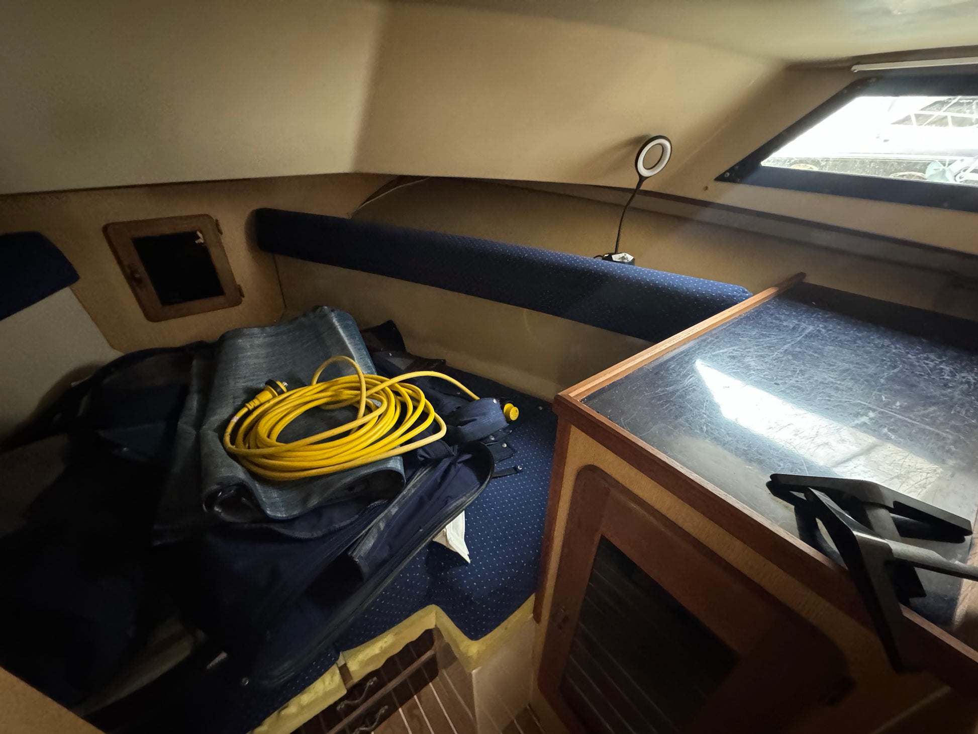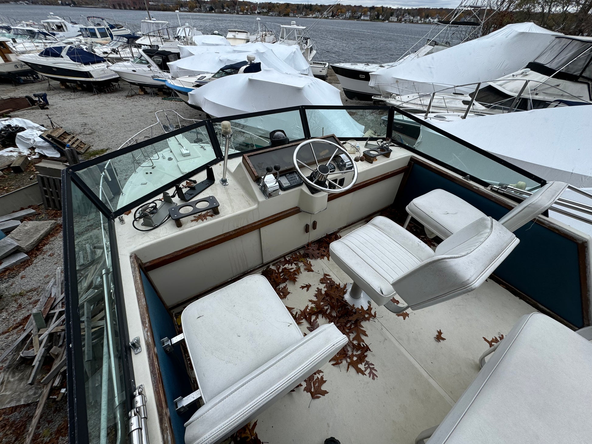 Introducing the 1986 Stamas Flybridge Sedan, a remarkable used vessel that combines classic charm with functionality. With an overall length of 31.66 feet, this flybridge boat is crafted from durable fiberglass, ensuring longevity and resilience on the water. The design is both practical and appealing, making it an excellent choice for cruising adventures or leisurely days on the water.