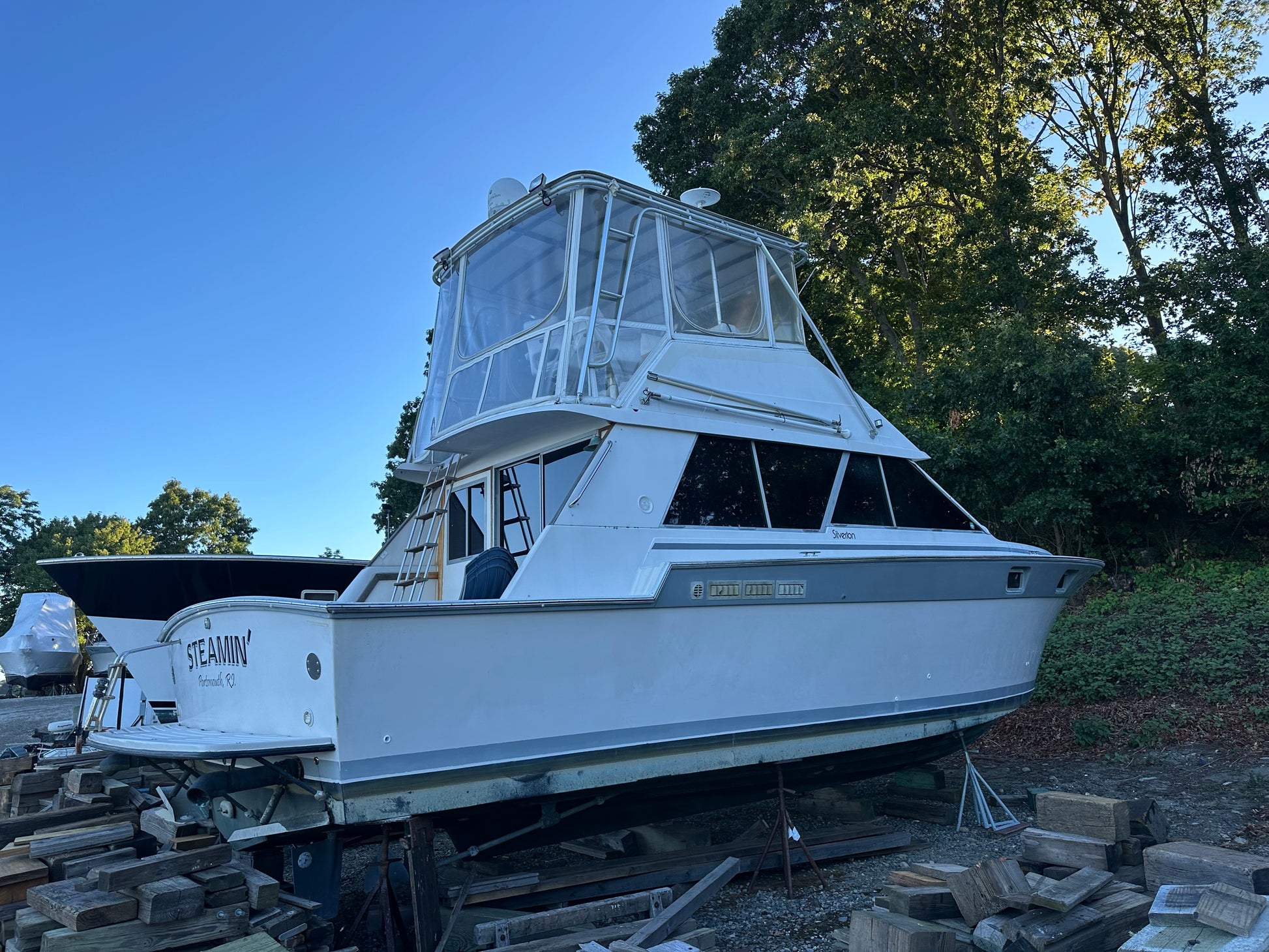 A Classic Convertible that has always been well maintained. She is powered with Twin Crusader Fresh Water Cooled 454’s, has AC/Heat, Generator, the bow rail was removed to give her a more modern look, dinghy davit, Hard top for the bridge with full enclosure and more.