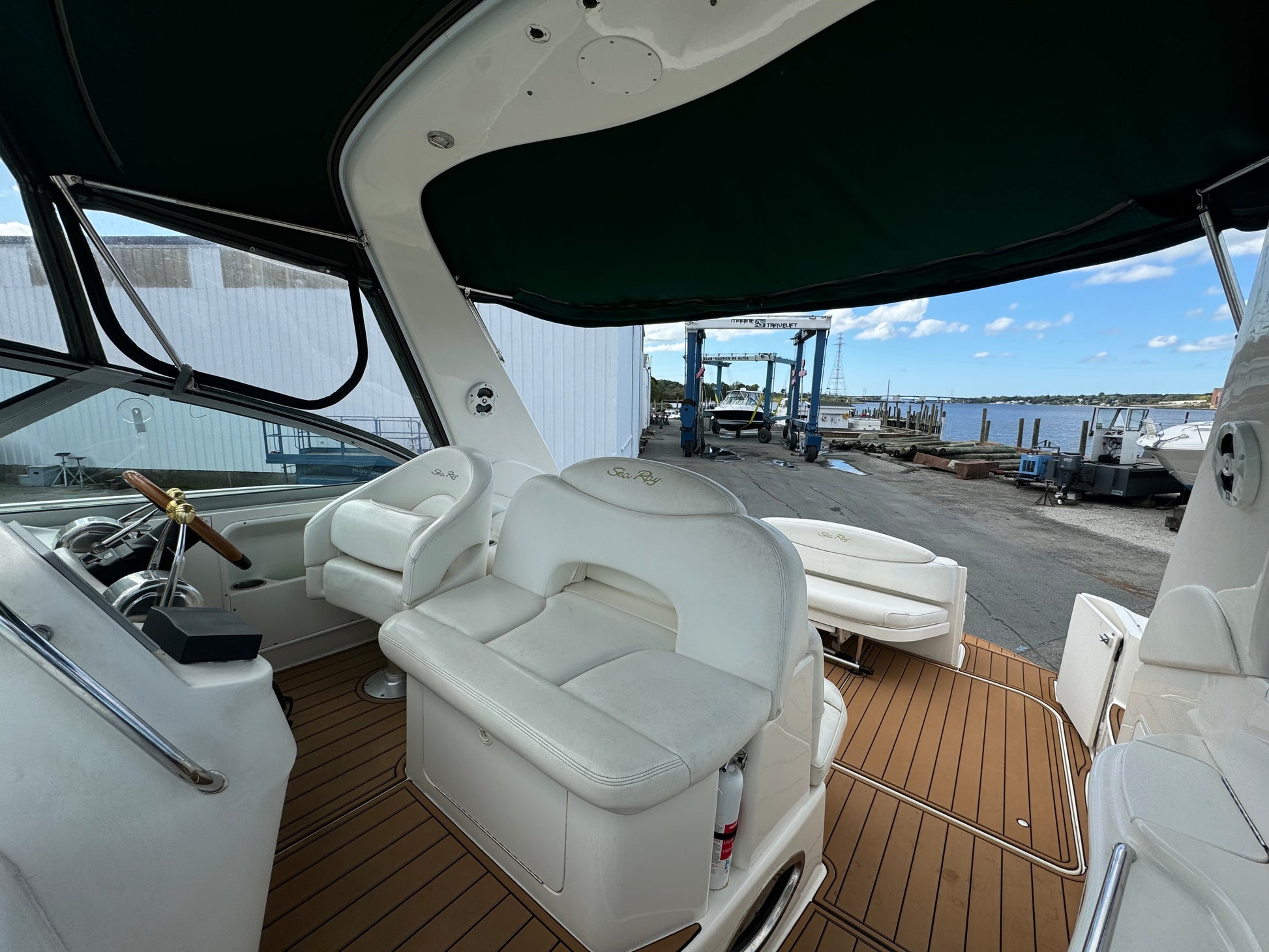 The 340 Sundancer is equipped with essential features, including a well-appointed head, enhancing comfort during your journeys. Comfort during your journeys is enhanced by the abundant seating and well thought out spaces on this vessel. This model is designed for those who appreciate the finer things in life; sleeping 5 and with upgraded features such as the sea deck, cherry interior, stainless steel fridge, cockpit sink, and LED speakers this boat is an ideal choice for cruising with family and friends. Experience the joy of boating with this beautifully crafted vessel, perfect for creating unforgettable memories on the water.