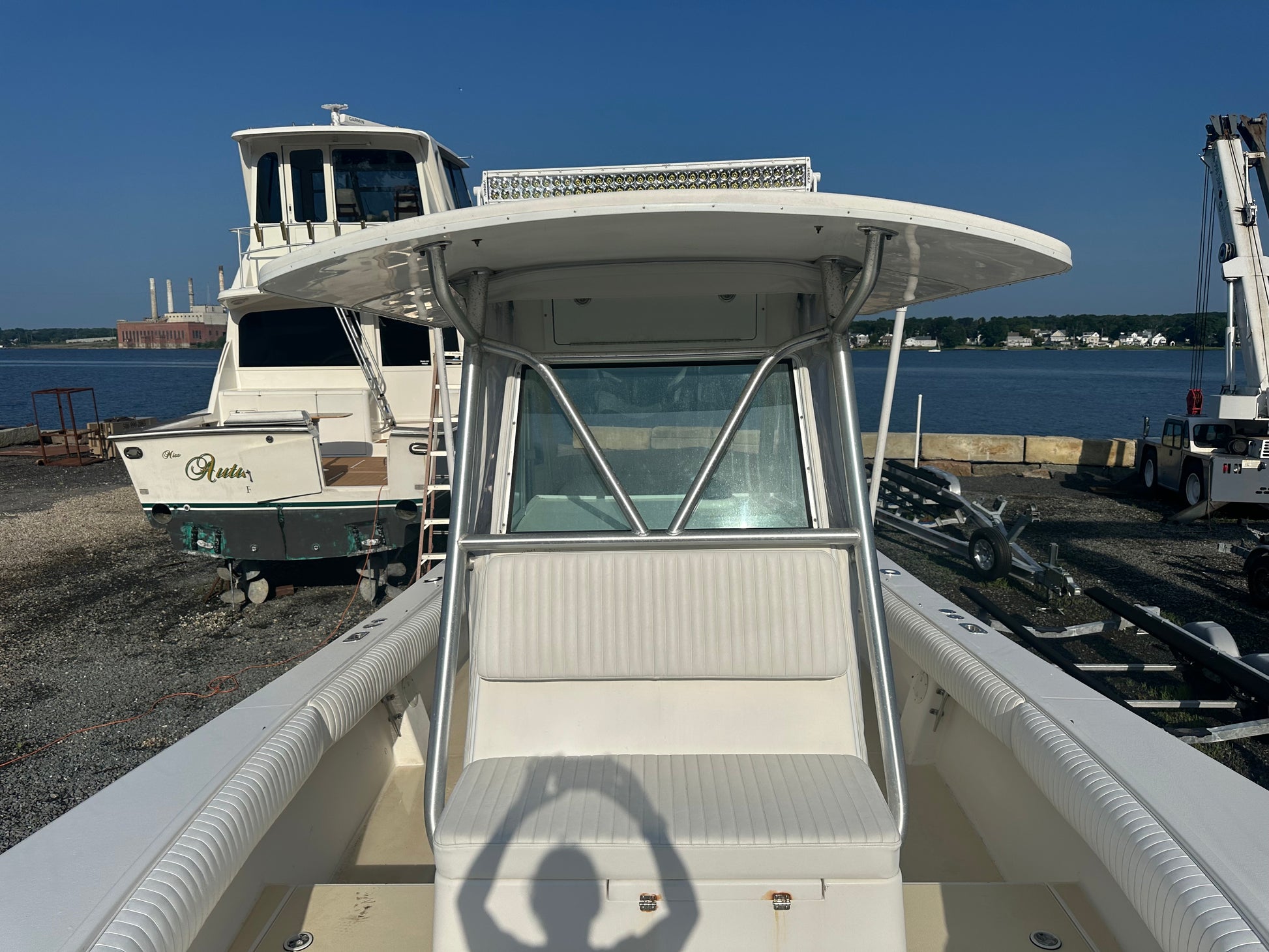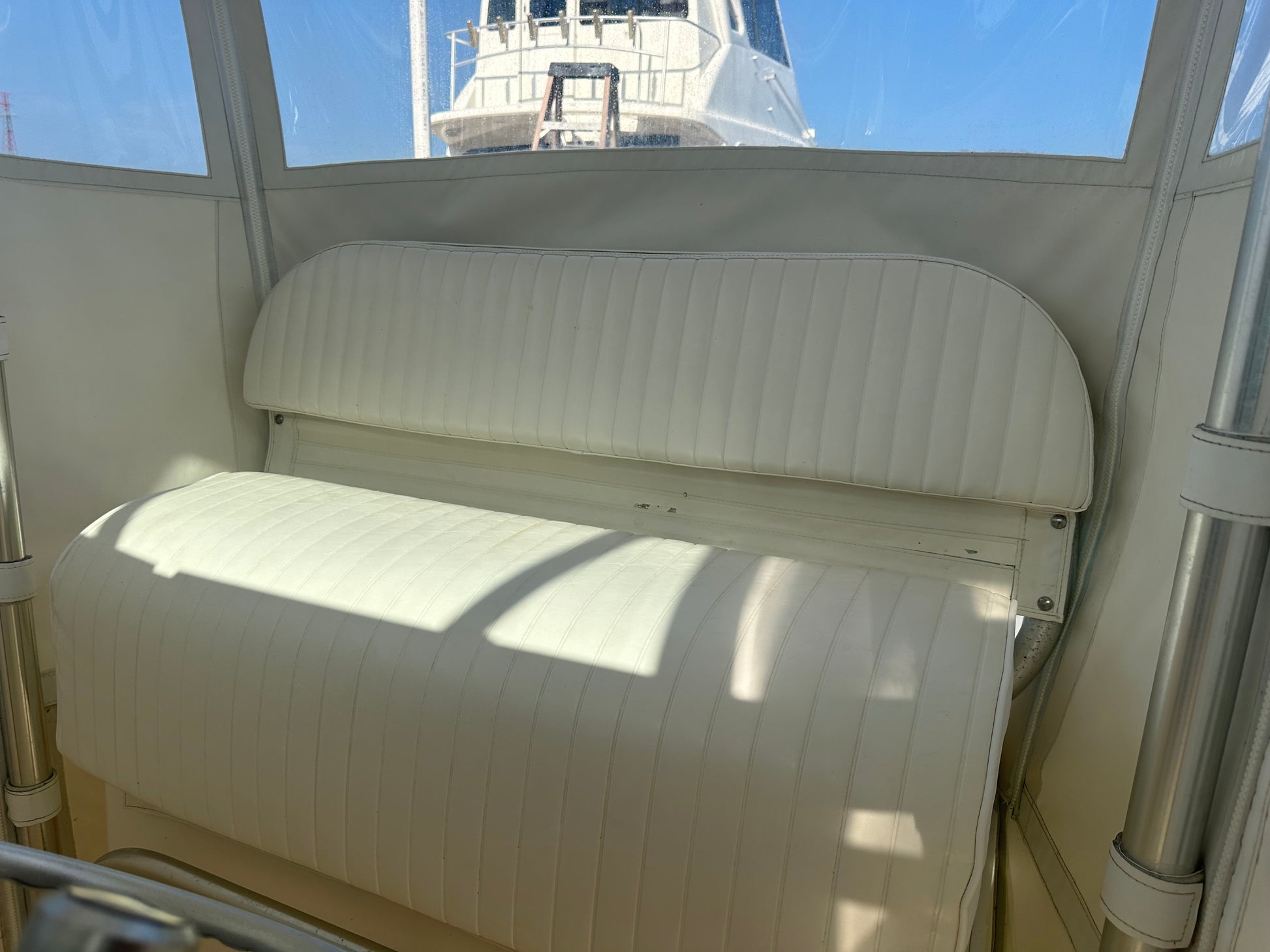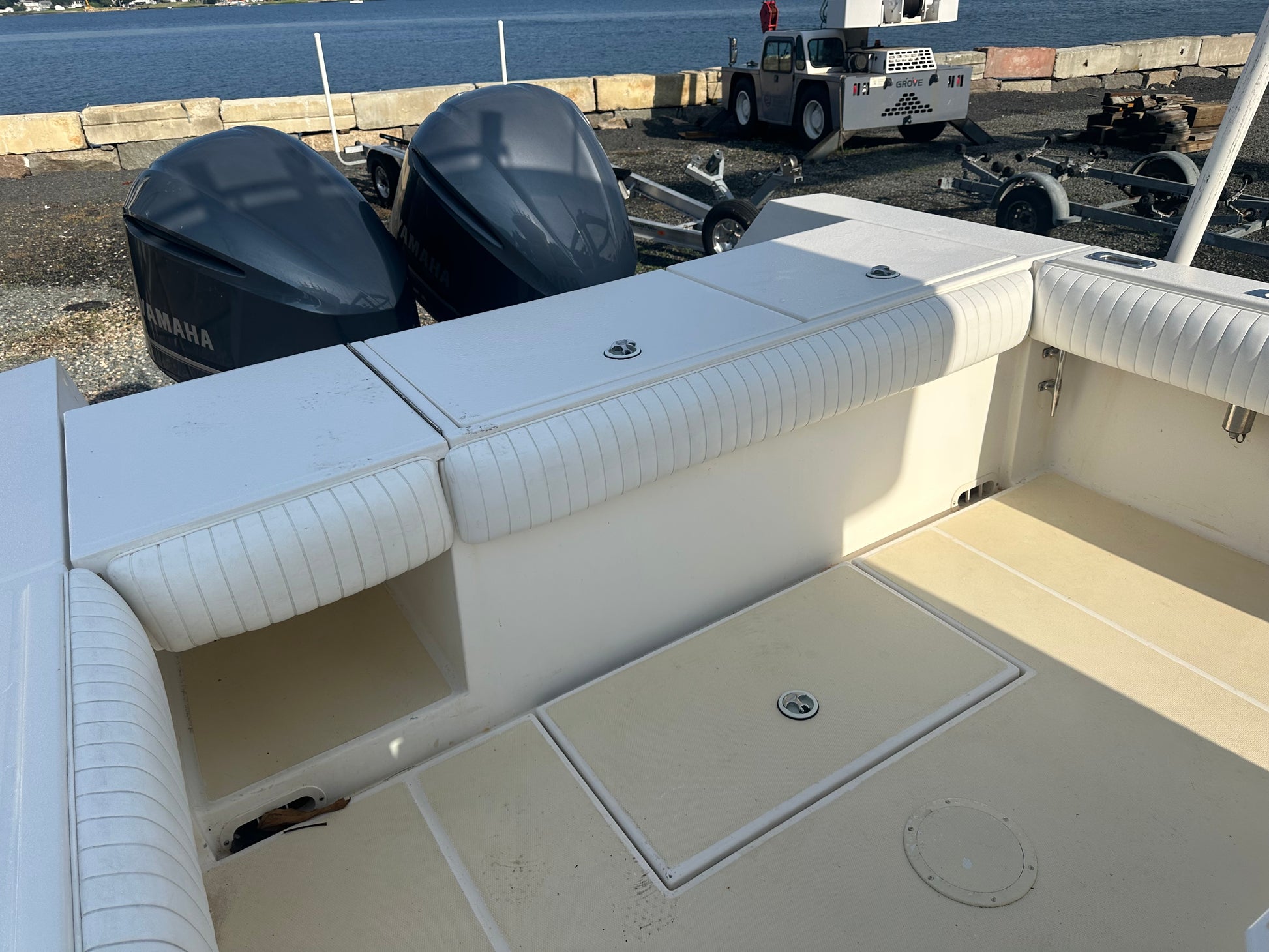 What a sweet boat! Combine it with newer engines and a triple axle trailer and you have a boat ready to chase the Tuna. A true fishing machine. The Yamaha 300hp 4 Stroke engines have roughly 140 hrs on them, she offers a hard T-Top, Live well/bait station. Full Enclosure for the helm, Rod holders galore, combing boards, seat in front of the helm, transom door, light bar and so much more.