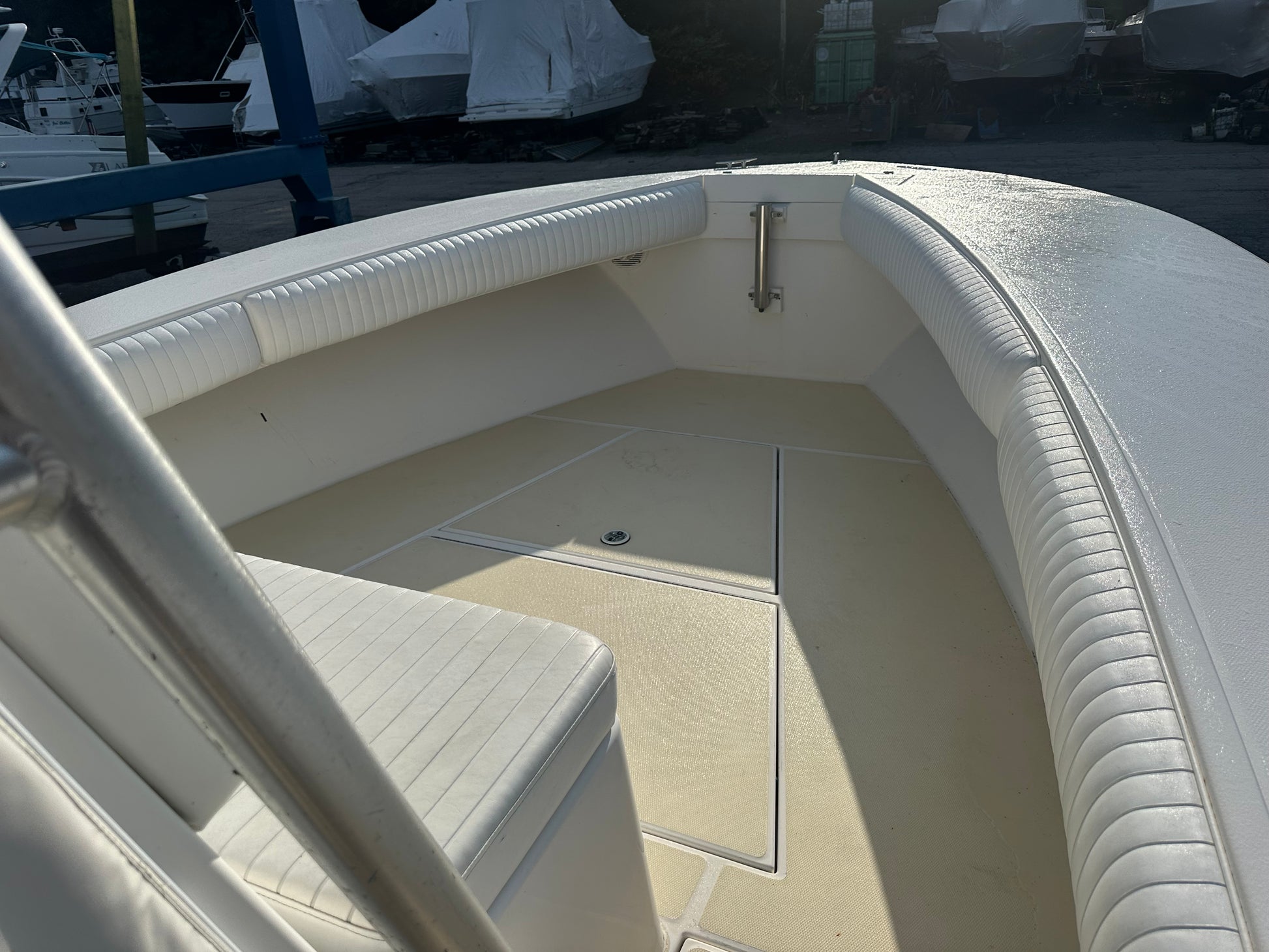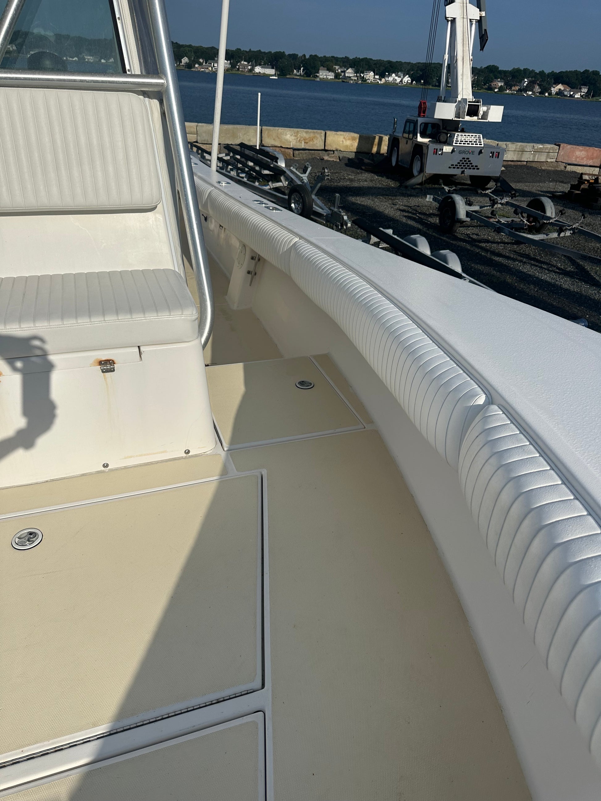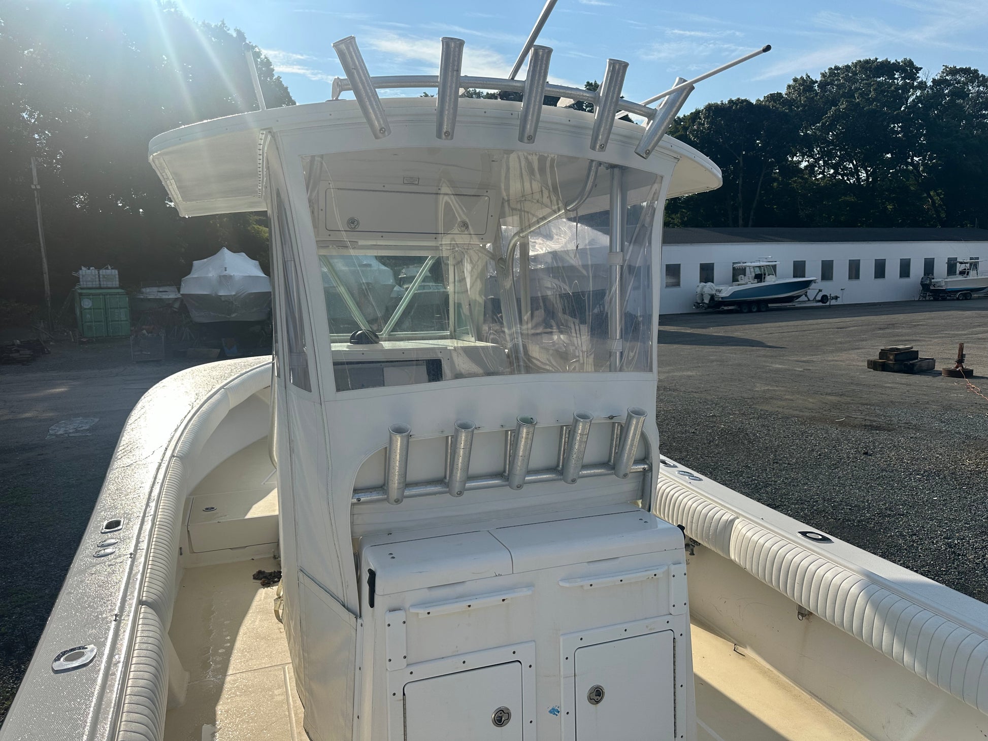 What a sweet boat! Combine it with newer engines and a triple axle trailer and you have a boat ready to chase the Tuna. A true fishing machine. The Yamaha 300hp 4 Stroke engines have roughly 140 hrs on them, she offers a hard T-Top, Live well/bait station. Full Enclosure for the helm, Rod holders galore, combing boards, seat in front of the helm, transom door, light bar and so much more.