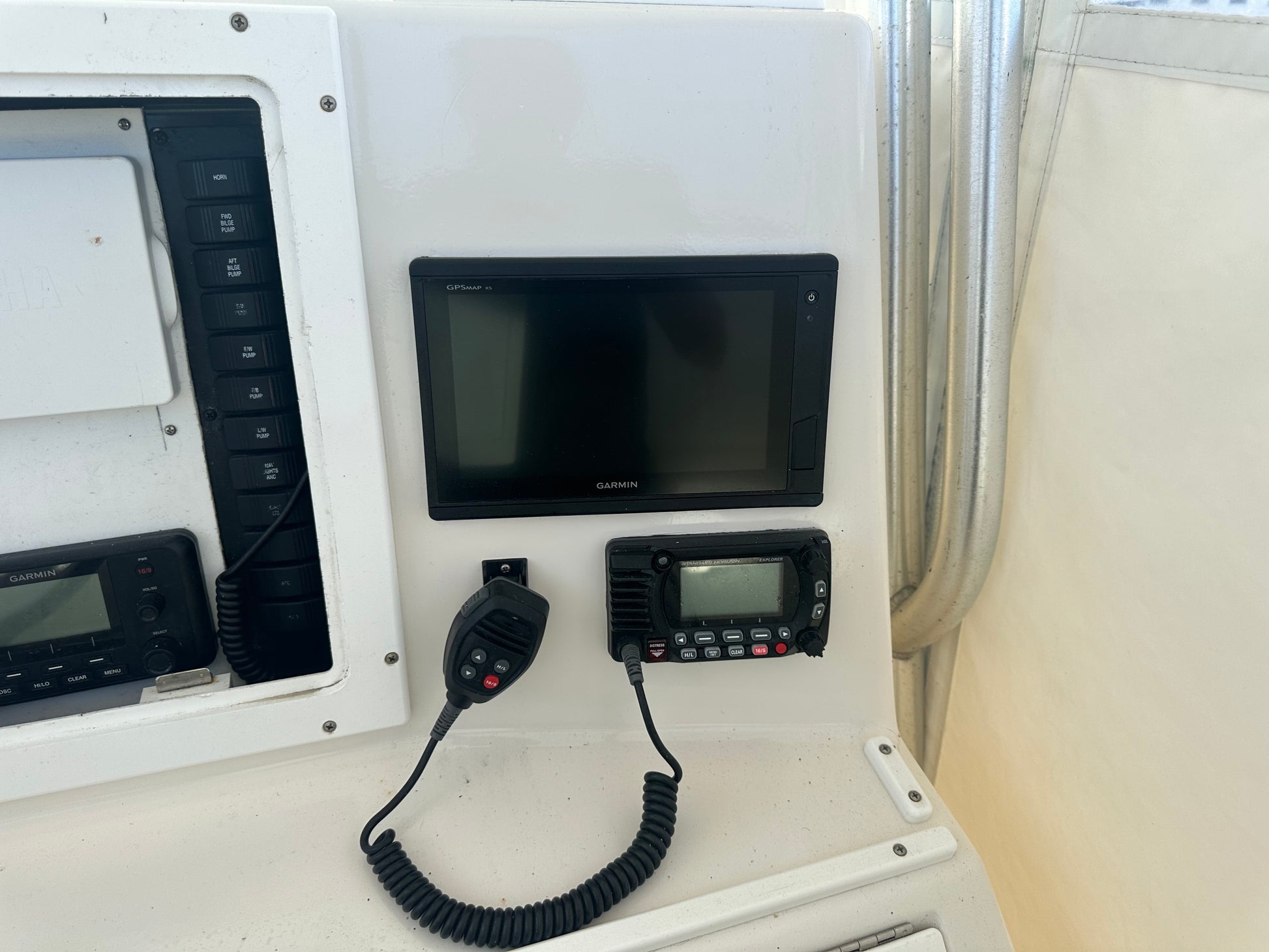 She has Garmin GPS/Radar touchscreen, Garmin VHF, with a back up Garmin XS GPS and Standard Horizon VHF, her blue hull gets attention whatever port she enters.