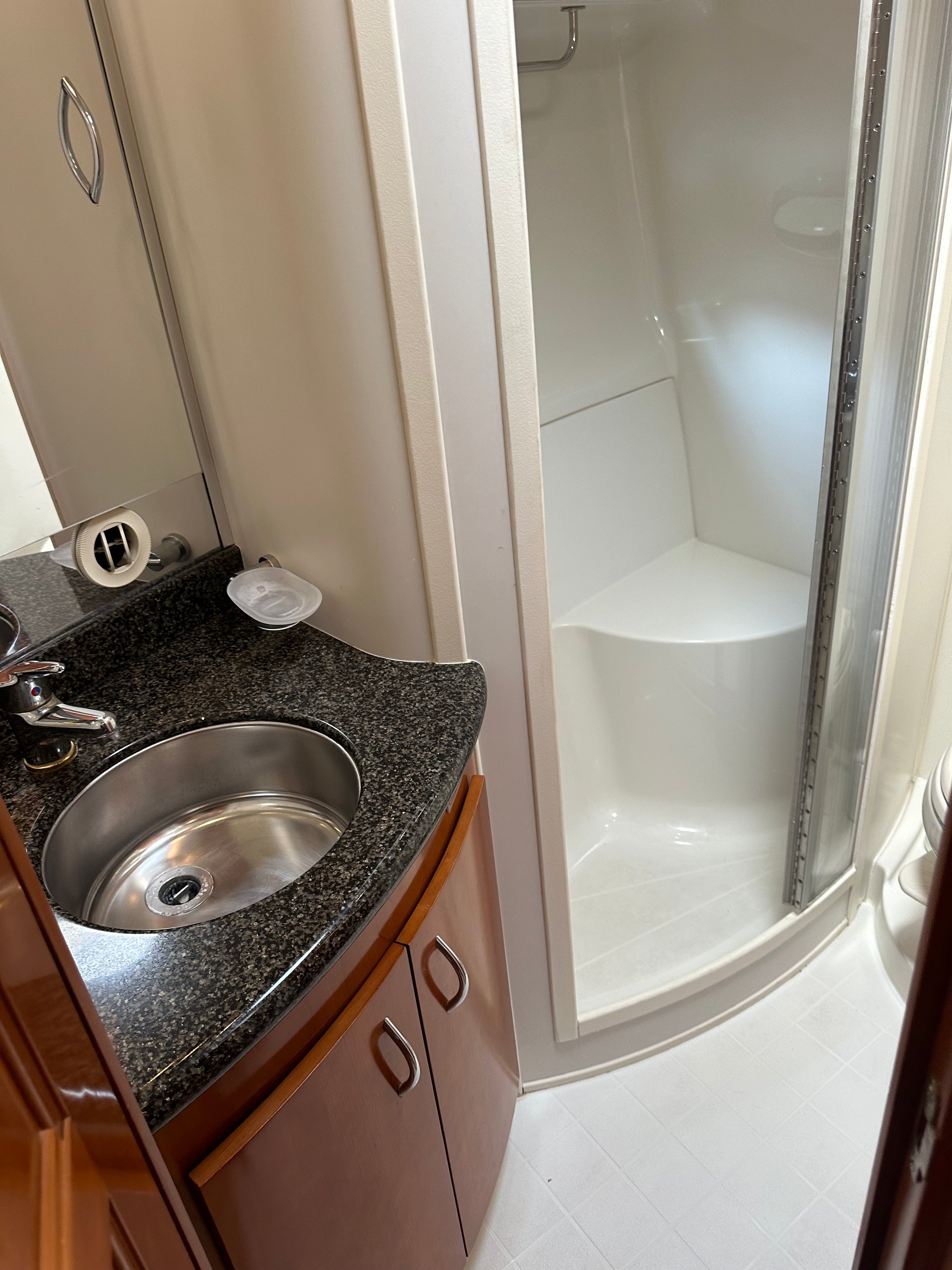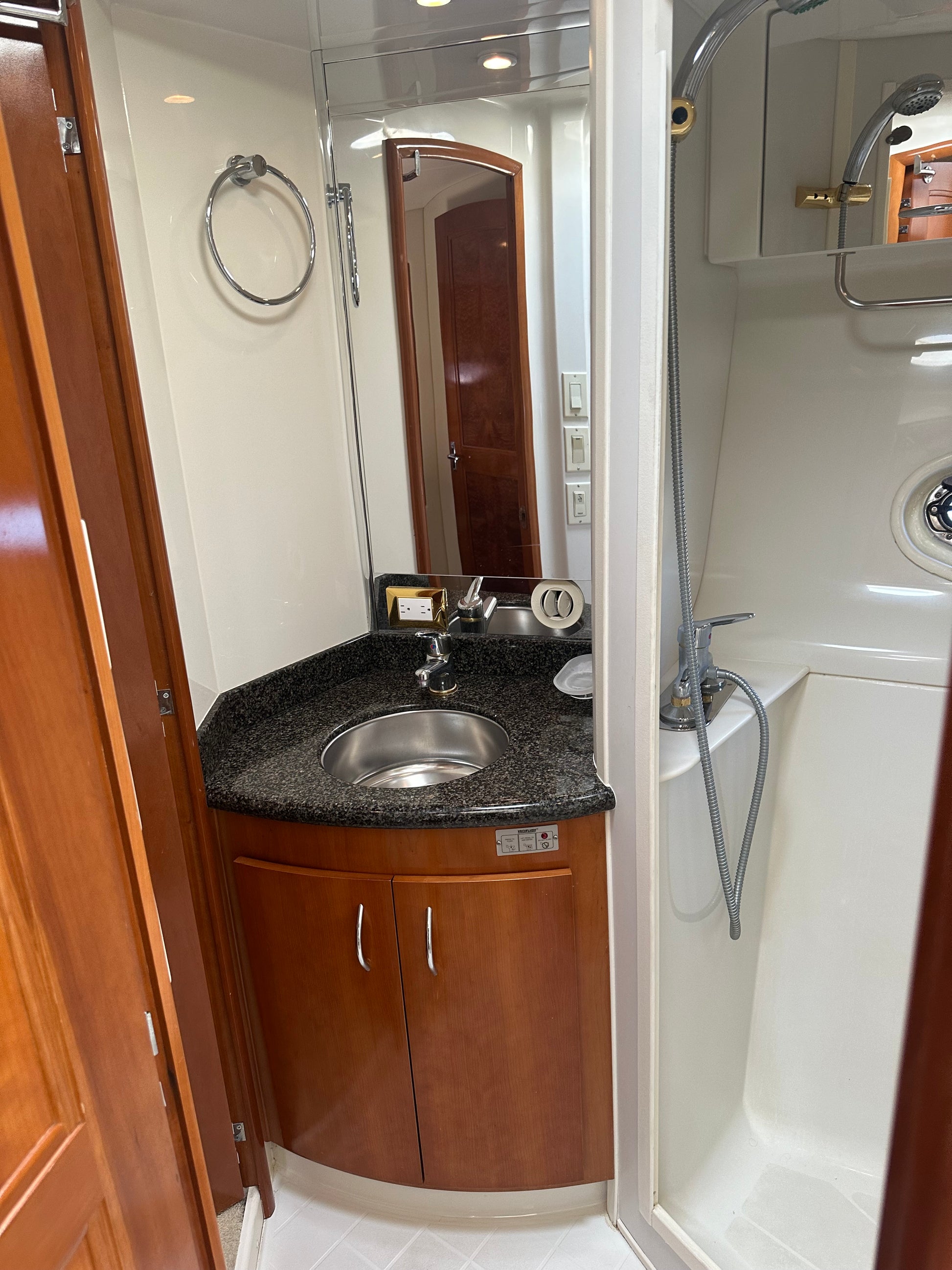 Offering a full refrigerator, stove, microwave, head with full shower, 2 staterooms with the master having a centerline queen. She has been meticulously maintained and it shows.