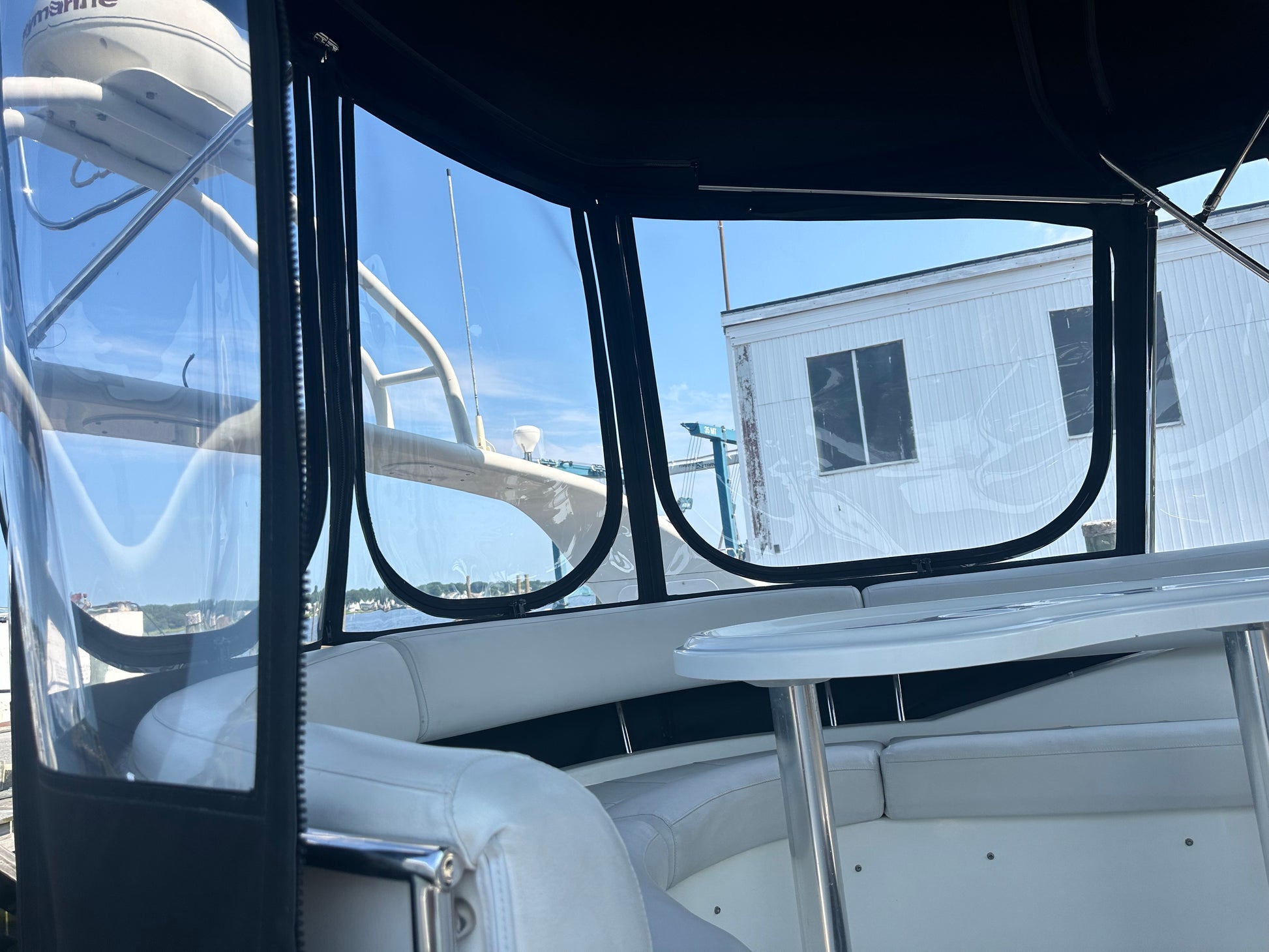 She is powered with Twin Volvo Diesel engines with low hours, has both a Bow and Stern Thruster, New Enclosure and her hull is wrapped with Black vinyl.