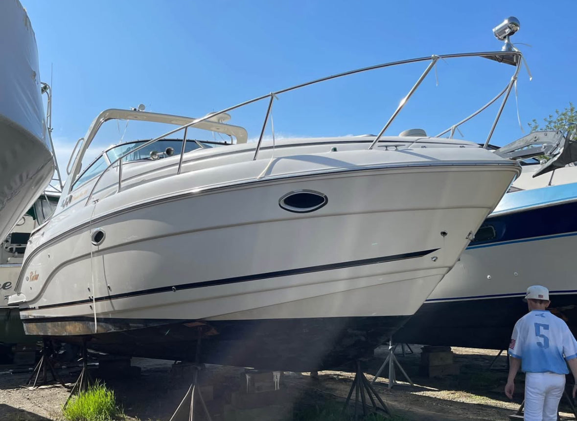 The helm has a Full Enclosure Windlass, Transom Door and Transom Shower and a walk though windshield making getting to the bow to toss the line very easy. This 300 is fully commissioned and sitting in the water ready for a new owner.