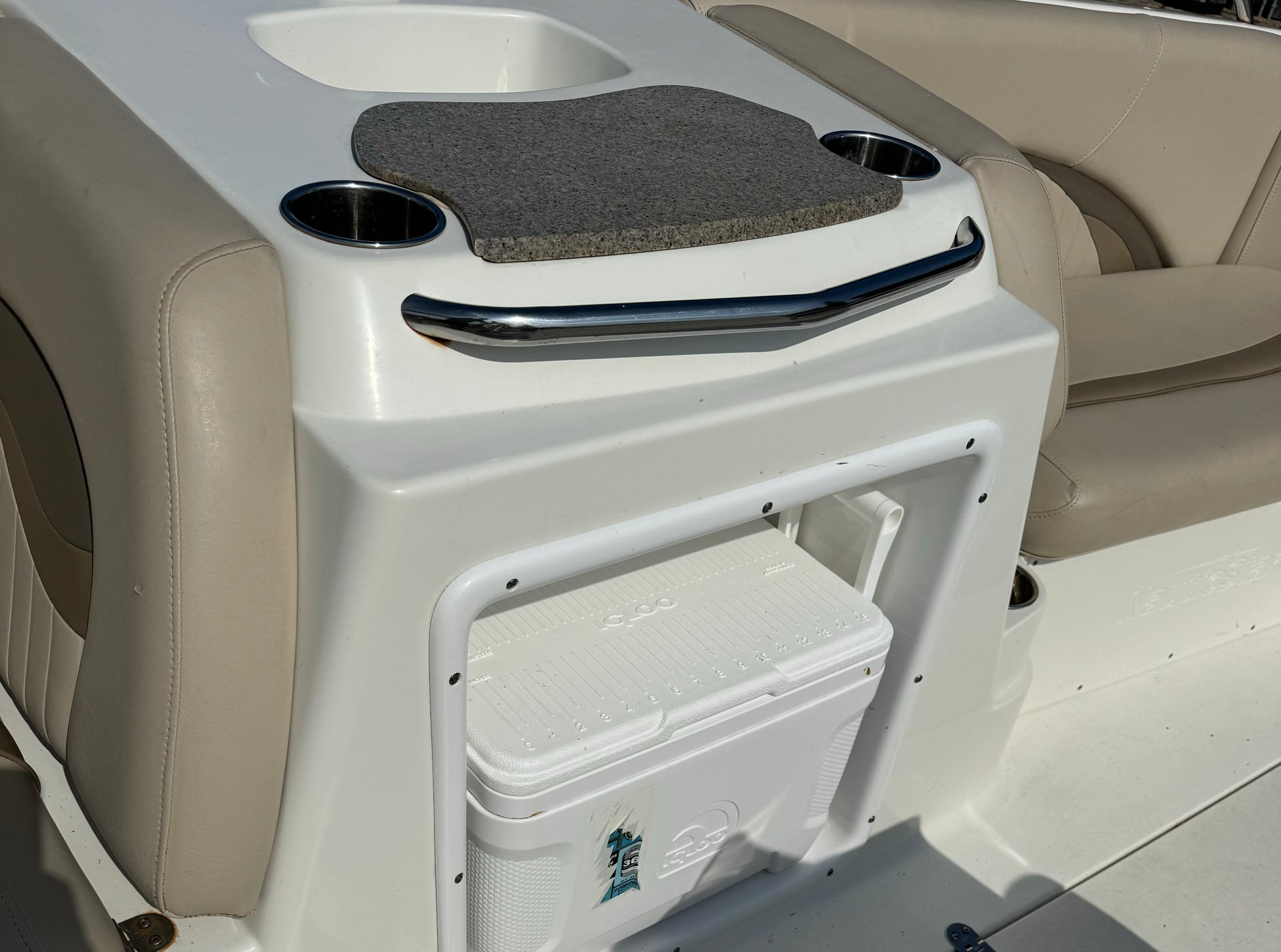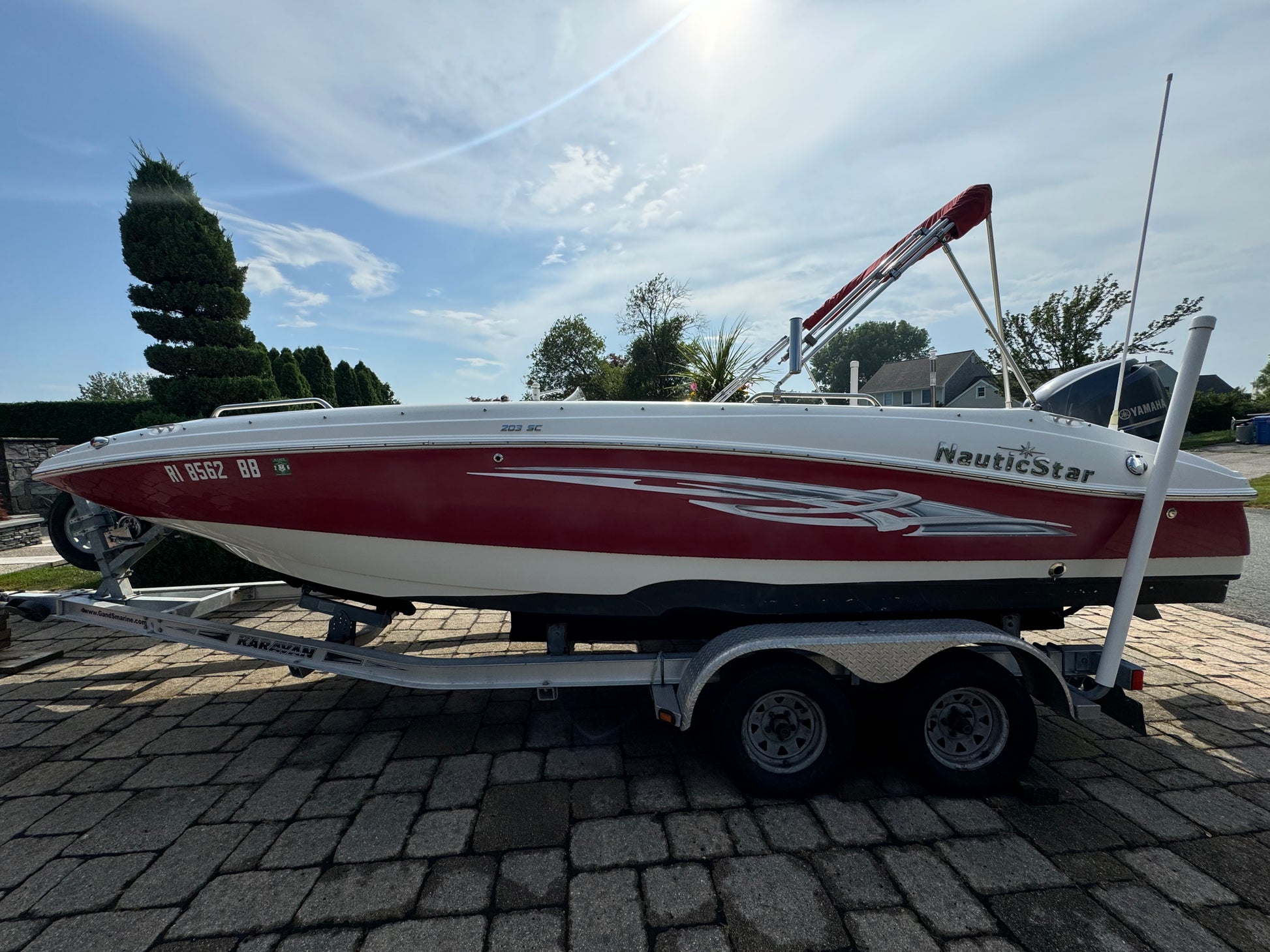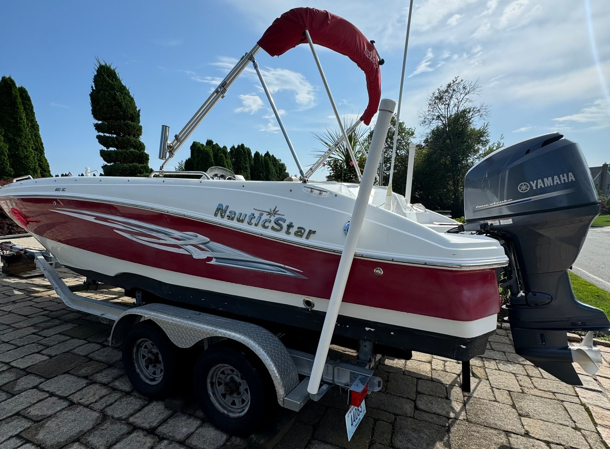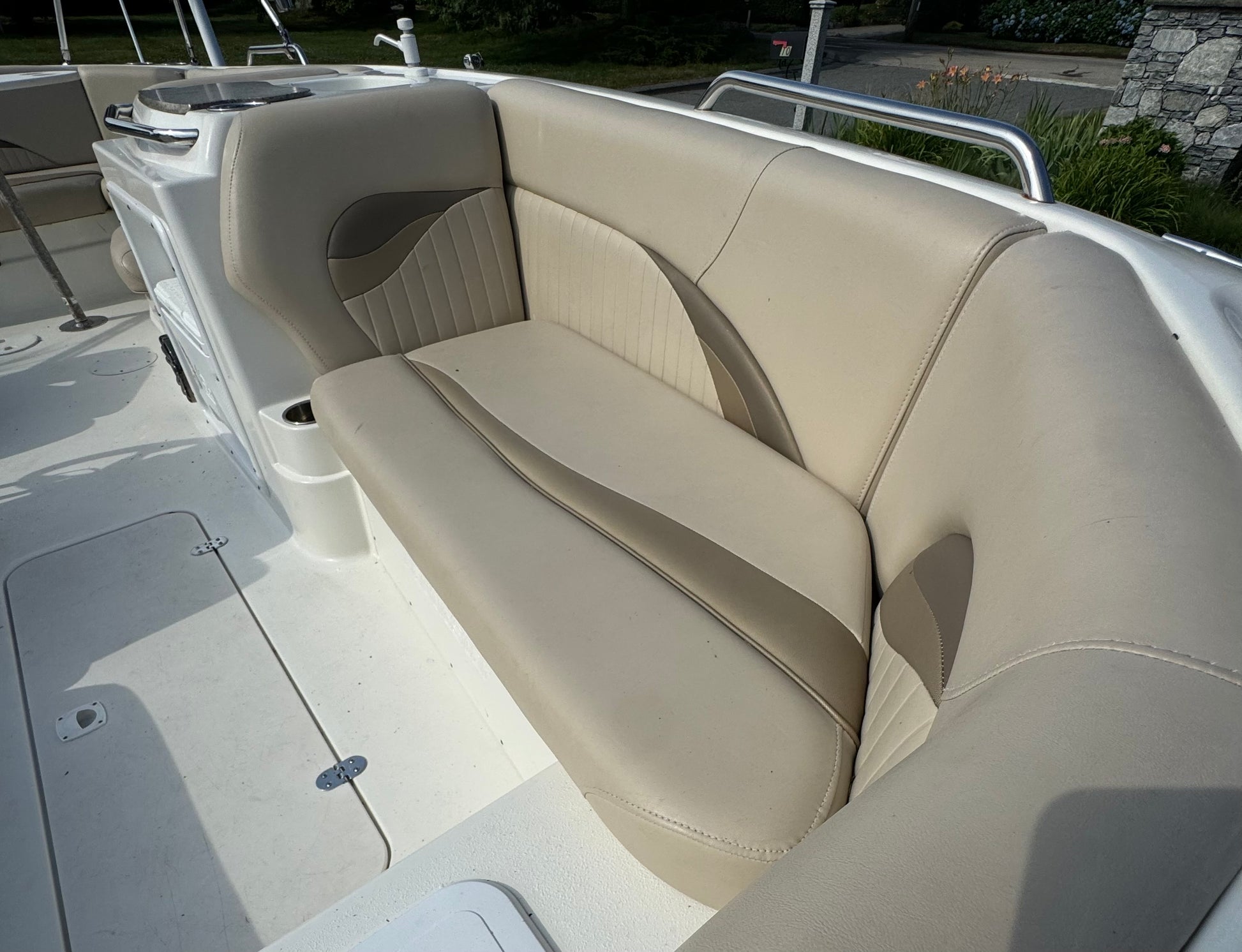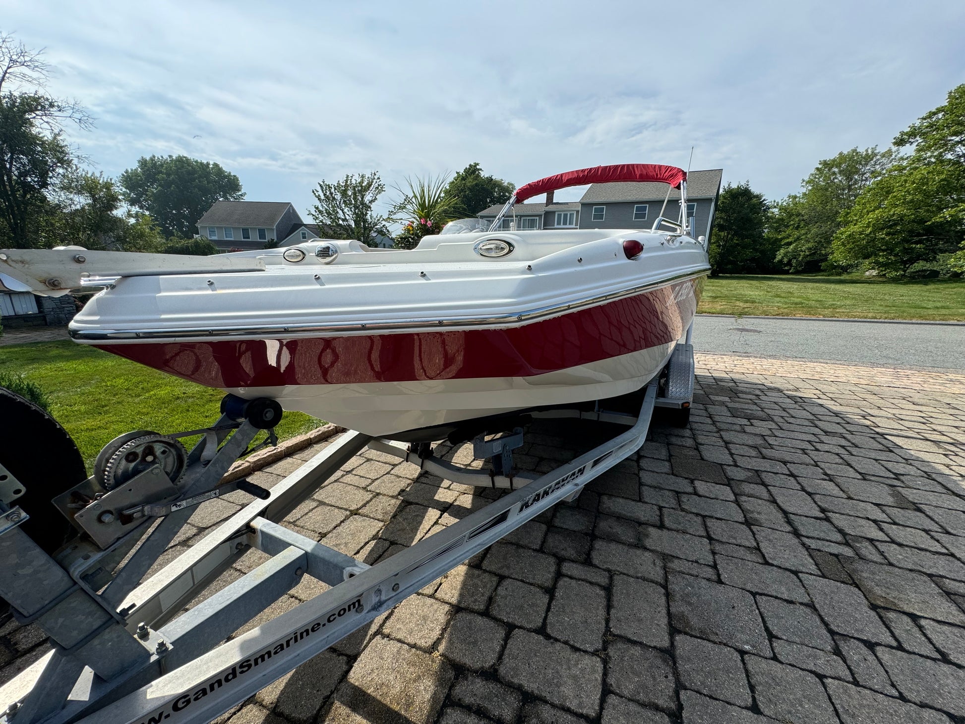 All of this and more….she has a Garmin GPS, Bimini top, Sink with cooler, Cockpit table, Stereo System, VHF and is sitting on a double axle trailer. She is in excellent shape for her age so give us a call!
