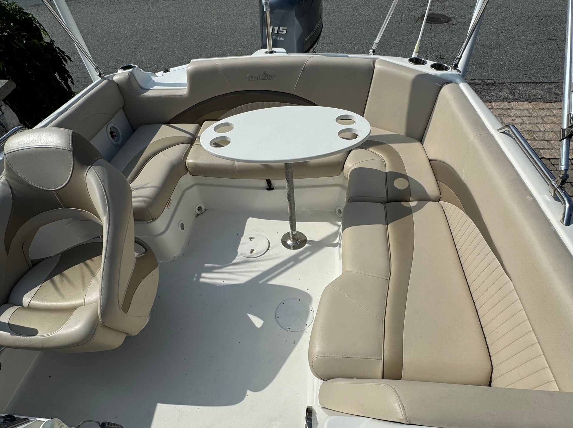Introducing the 2014 NauticStar 203SC Sport Deck, a versatile and stylish deck boat perfect for family outings and water adventures. With an overall length of 20 feet, this used vessel boasts a modified vee hull made of durable fiberglass, ensuring stability and performance on the water. Powered by a reliable 115 hp Yamaha outboard engine with only 220 hours of use, it promises an exhilarating ride. Designed for comfort, the boat accommodates up to 8 passengers, making it ideal for gatherings with friends and family. Its thoughtful layout allows for easy movement and socializing, enhancing your on-water experience. The NauticStar 203SC is equipped with essential features, ensuring a seamless boating experience. Whether you're cruising, fishing, or simply enjoying a day on the lake, this deck boat combines functionality with style, making it a fantastic choice for any boating enthusiast.