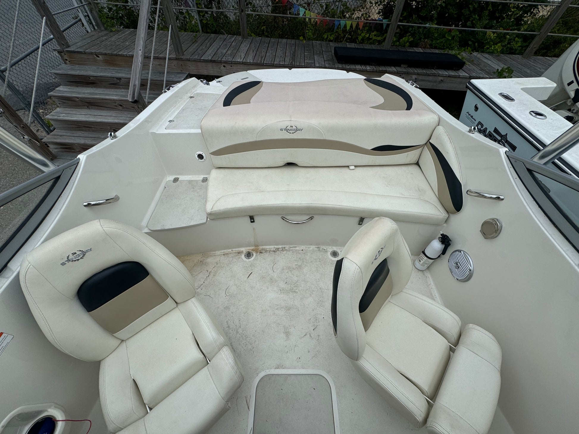 The boat is equipped with essential features that enhance your time on the water, ensuring comfort and convenience. As well as enhanced features such as its ski tower, speakers throughout, platform with ladder, bucket seats, and large lounge area. Whether you're cruising along the coast or casting a line, the Stingray 198 RX promises an enjoyable and memorable adventure. Experience the thrill of boating with this exceptional model that truly stands out in its class.