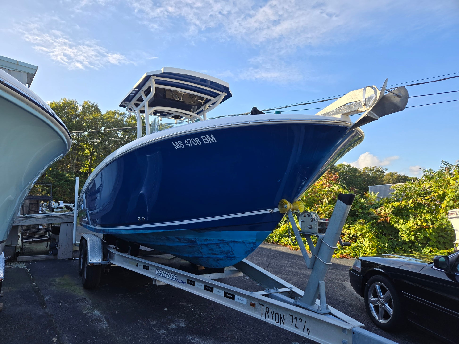 She seats plenty with the fold down rear seat and her front seats have backrests. She is a sharp looking center console that has been professionally maintained and ready for a new owner.