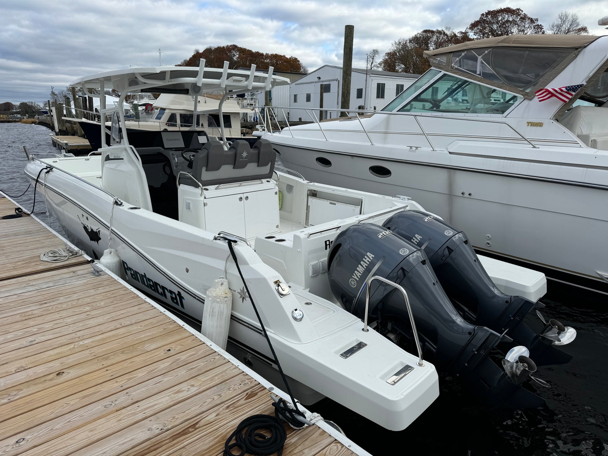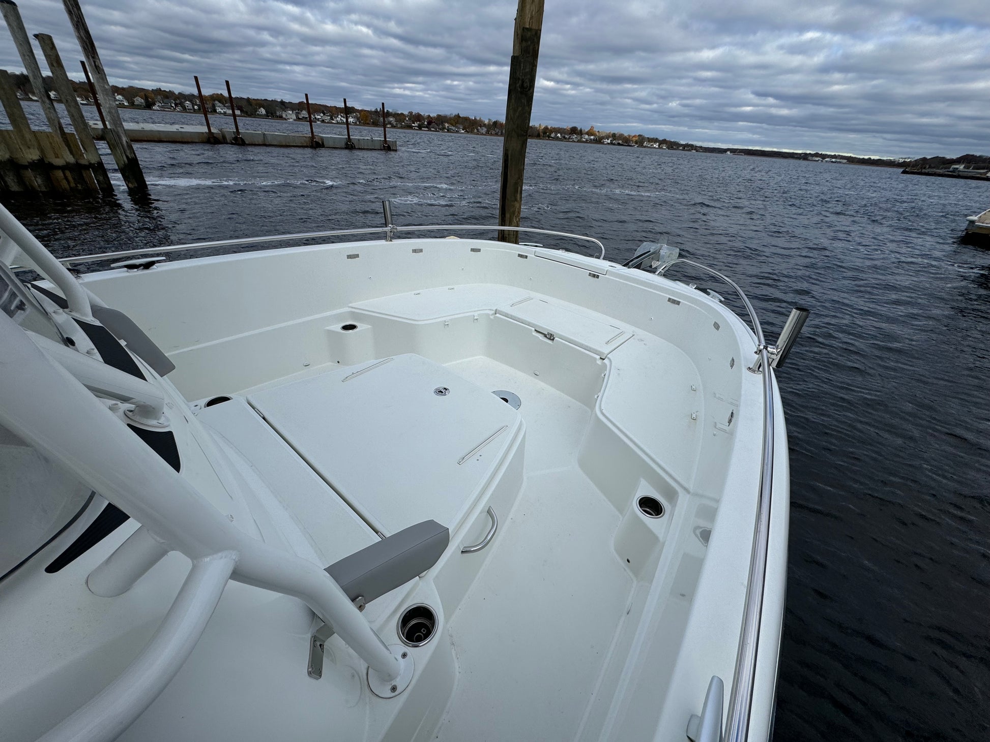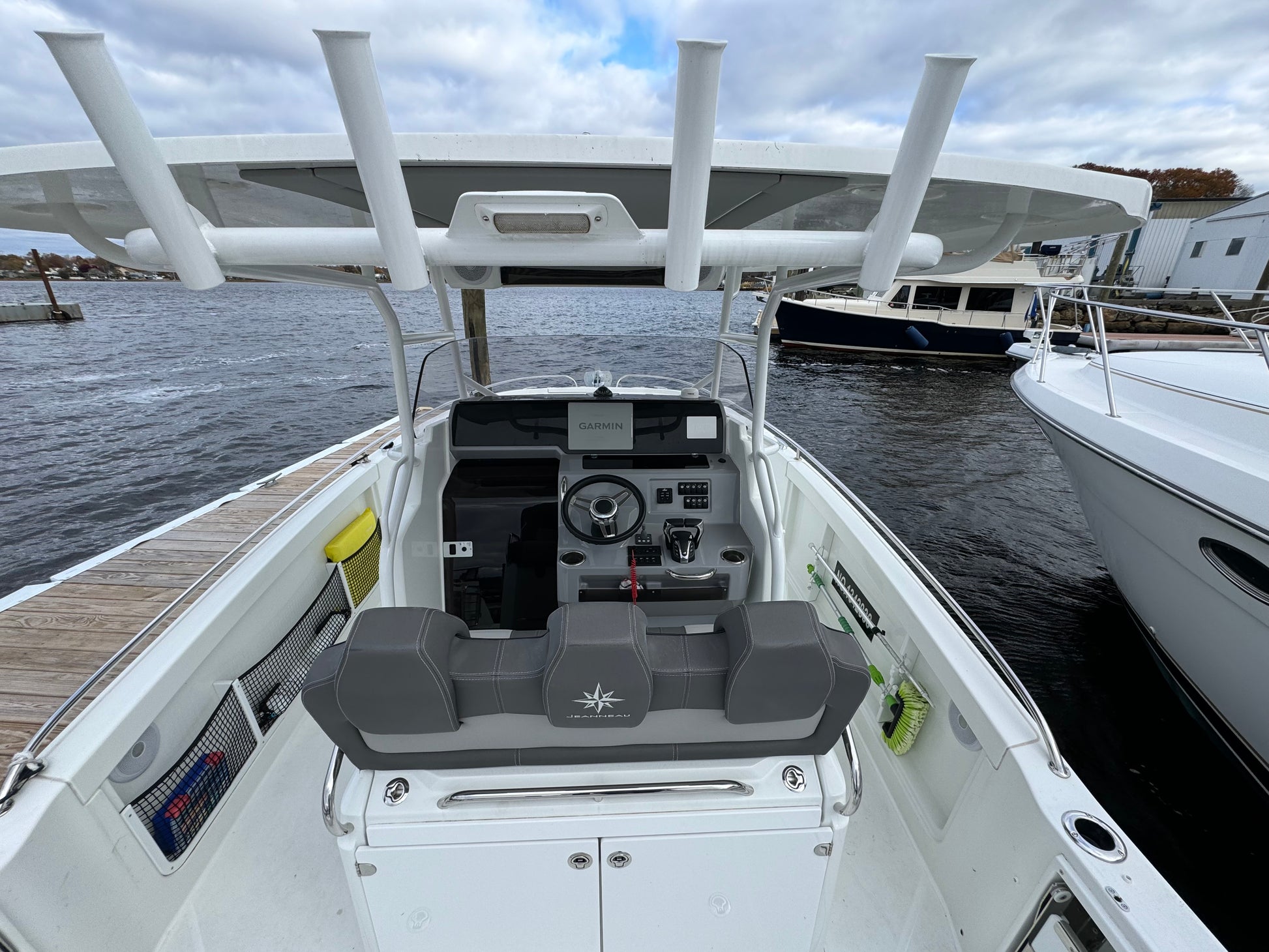 A rare find in New England! Introducing the 2023 Jeanneau Leader 9.0 CC, a stunning center console boat that combines modern design with exceptional performance. With an overall length of nearly 30 feet, this vessel is crafted from durable fiberglass and features a modified Vee hull shape, ensuring stability and smooth navigation on the water.